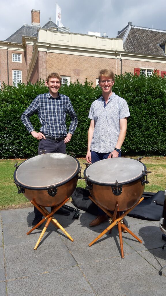Mijn eigen verzameling begon in 2022. Marinus Komst, mijn docent en inspiratie, stuurde in juli 2022 een advertentie door van een tweedehands set barokpauken. Het ijzerwerk was in goede staat, daarna heeft Marinus ze voorzien van nieuwe vellen en houten onderstel.